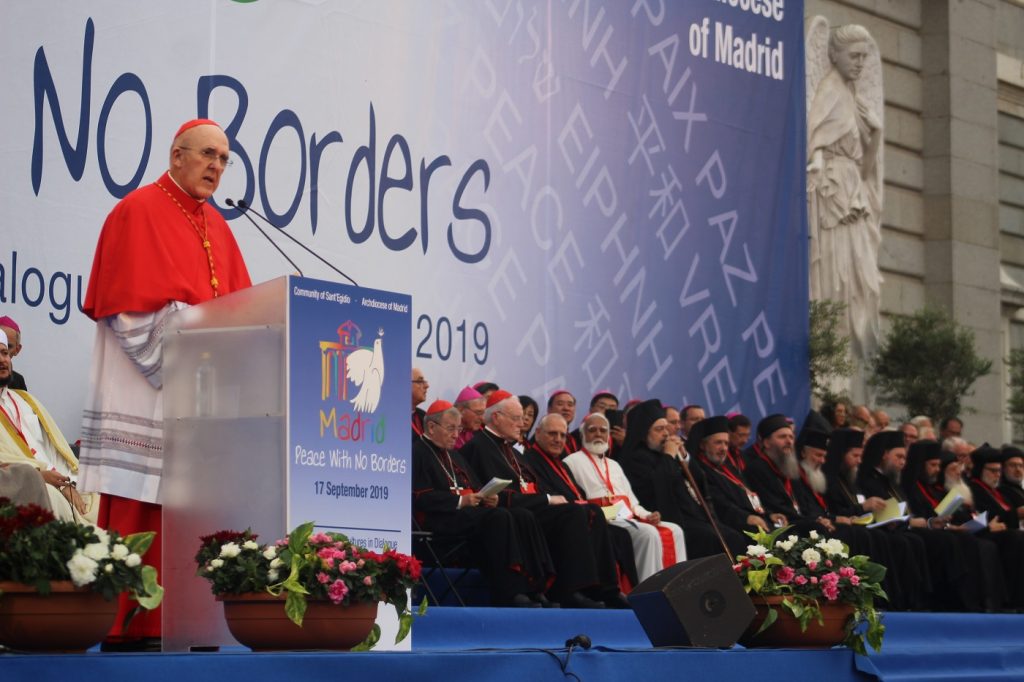 Unos minutos antes, al anfitrión del encuentro, el cardenal arzobispo de Madrid, Carlos Osoro, ha tildado de «regalo» estos días en los que «hemos vivido y nos hemos animado a no ser islas, a no sembrar prejuicios, enemistades o condenas», sino que «hemos querido sembrar semillas de paz».