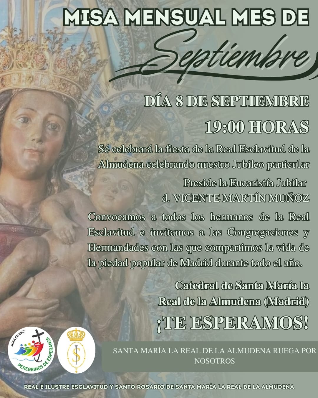 MISA DE LA CONGREGACIÓN DEL MES DE SEPTIEMBRE Queridos Congregantes, fieles y devotos. Como cada 8 de septiembre a las 19:00 horas, nuestra Congregación celebrará Santa Misa y Fiesta Anual […]